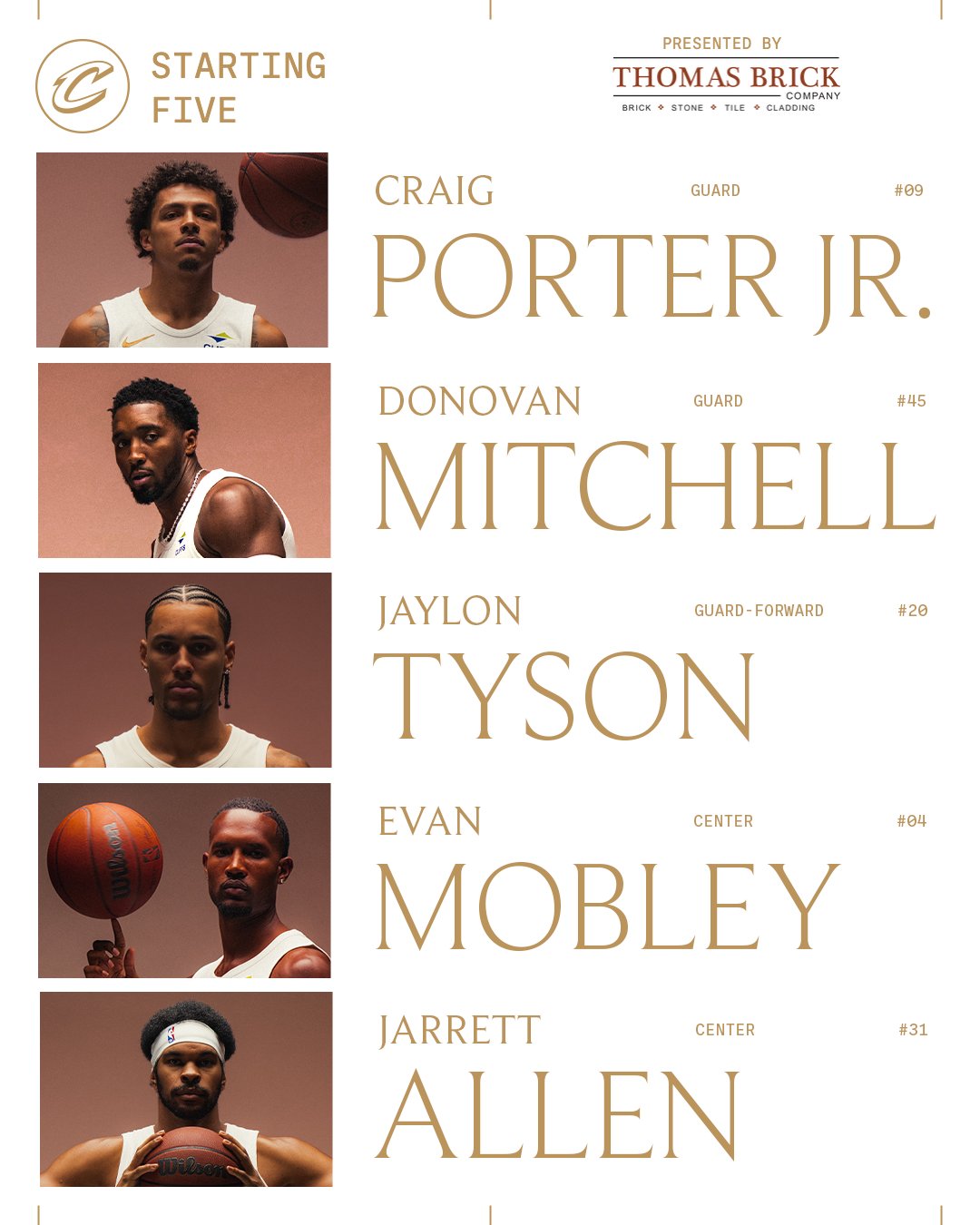 骑士首发:小克雷格·波特、米切尔、杰伦·泰森、小莫布里、贾勒特·阿伦。